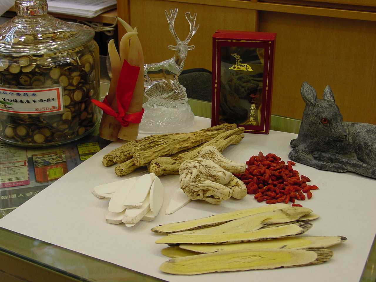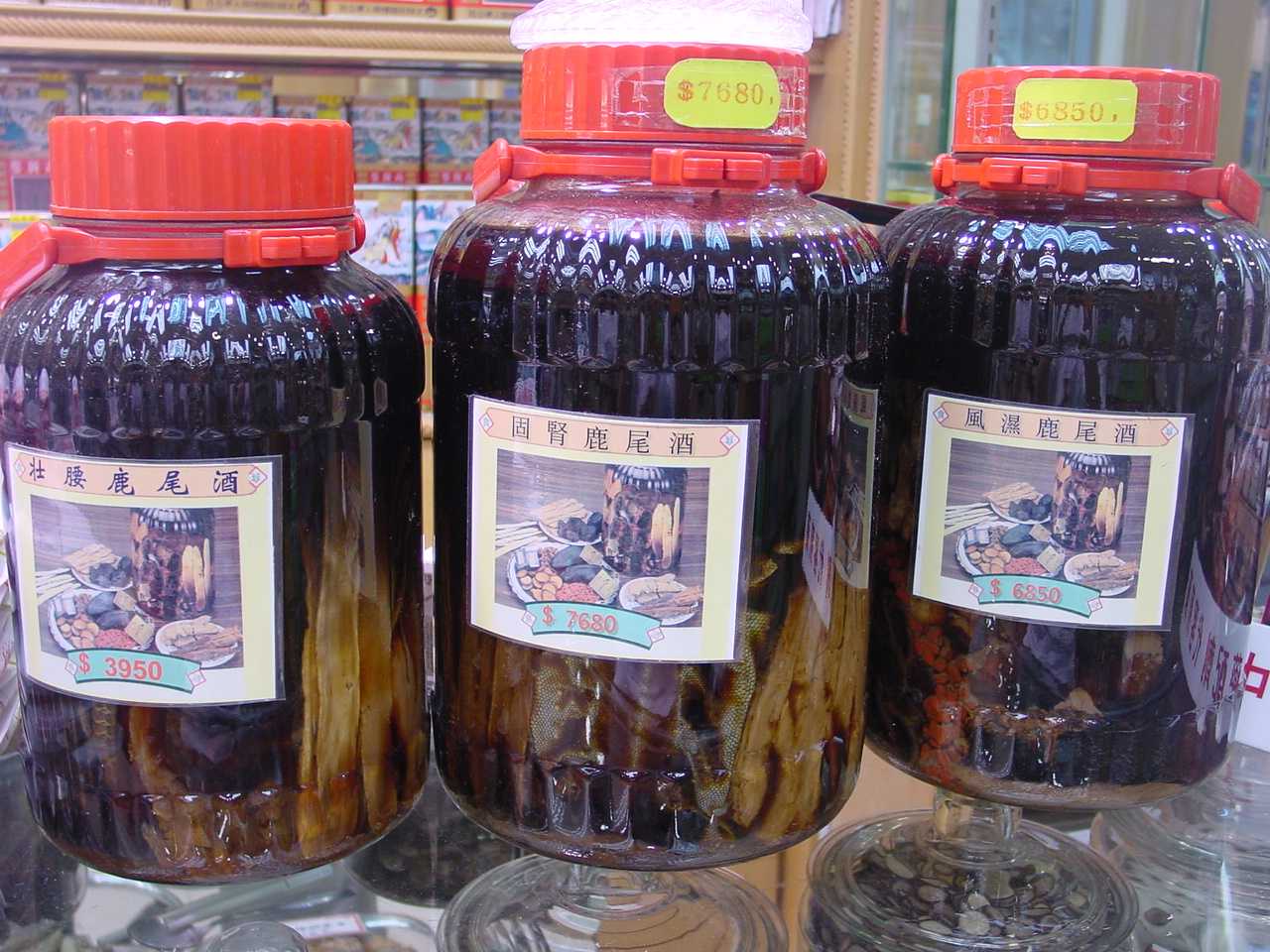 本店由專人及醫師挑選一些名貴藥材來配制一些具有療效的藥酒 : 固賢鹿尾酒、風濕鹿尾酒、壯腰鹿尾酒等o 其功效可 : 大補元氣、大益虛損、延年益壽、治男女賢虛、神經衰弱、陽痿早洩、白帶清稀、夜尿頻多、腰膝無力等o 其藥材有 : 鹿尾耙、鹿茸片、三鞭、高麗人參、當歸、巴戟、杜仲、牛七、杞子等o |
